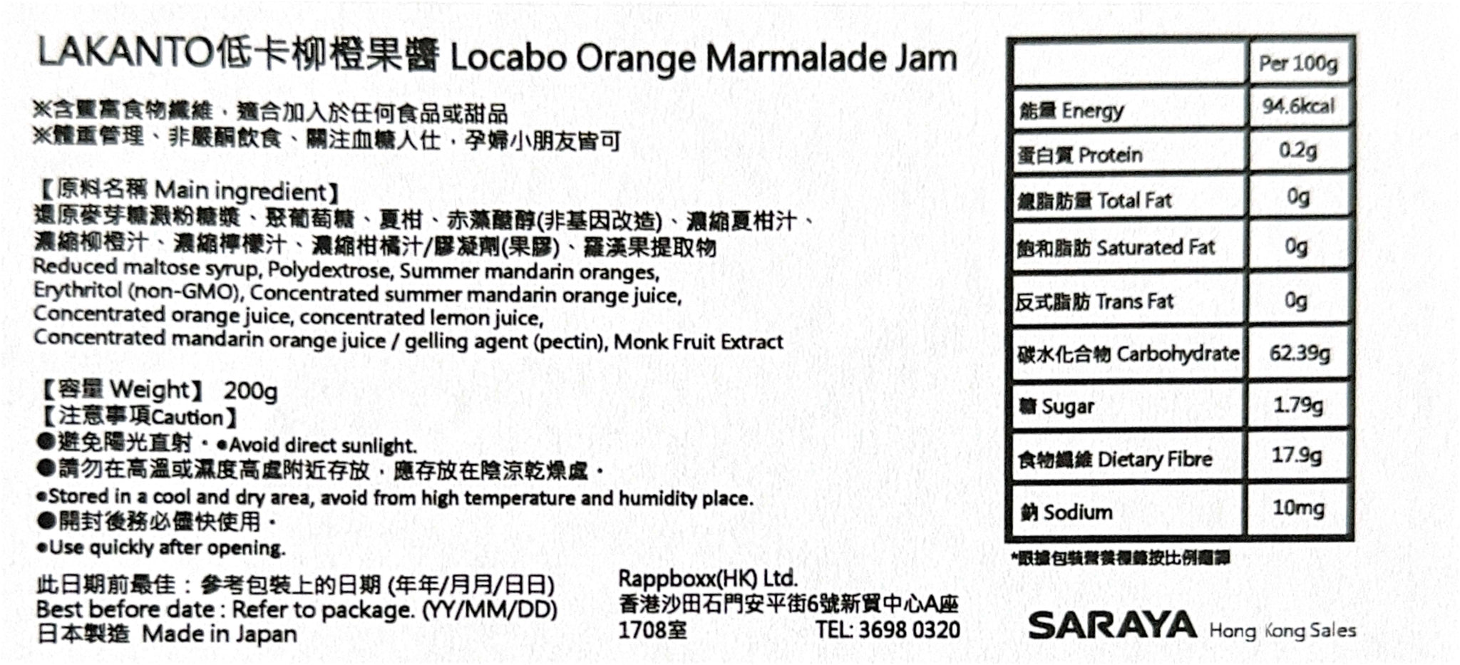 這款美味的果醬採用高純度羅漢果萃取物和赤藻醣醇精製而成,比普通橙子果醬的熱量低 62%,令人印象深刻,是注重健康口味的人的選擇。