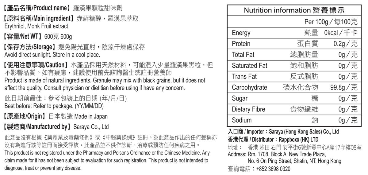 LAKANTO - 日本天然羅漢果糖 SARAYA (600克) (生酮適用)