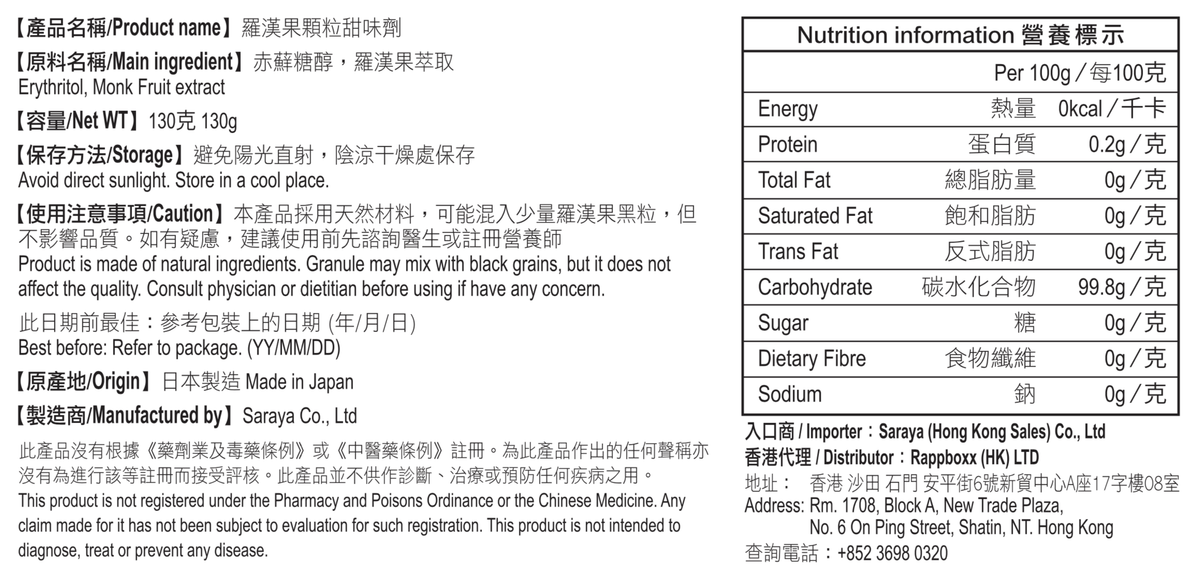 LAKANTO - [2包]日本天然羅漢果糖 Saraya (130克) (生酮適用)-新包裝